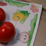 The Moo Munchies collection isn’t complete with a cute tea towel to use in your kitchen. The tea towel is huge, 50 x 70 cm! Perfect to use to dry your dishes or your hands. The tea towel is 100% cotton canvas, which does make it shrink a bit if you wash it on high temperature. Our advice is to wash it on cold temperatures and now and then on a high temperature if you really need to.
